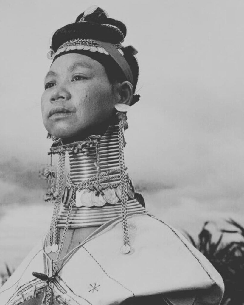 The Kayan women adorn themselves with brass neck rings which in time, give an illusion of a head hovering over an elongated golden neck – a beauty trademark. The women start wearing neck rings from as early as 2 years old, with a ring or two added each year. By the time they are in their 20’s, the rings can weigh as much as 25 pounds.